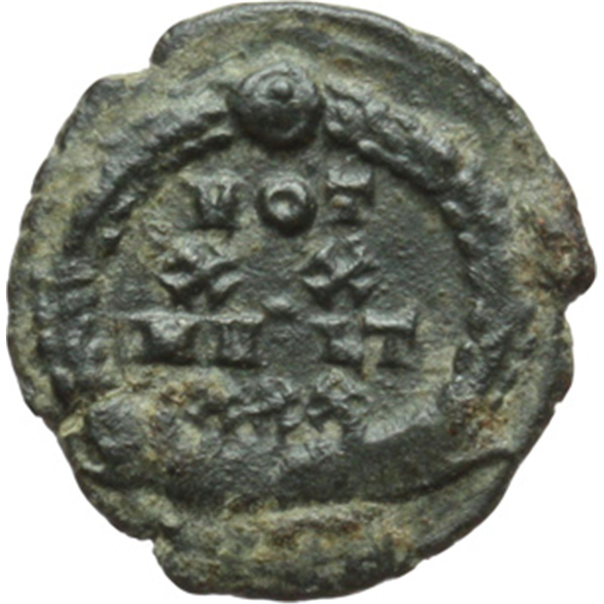 Impero Romano. Costantino I (307-337). AE 13 mm. Nicomedia. D/ VRBS [ROMA] Testa elmata di Roma a sinistra. R/ VOT / XX / MVLT / XXX entro corona. RIC 53. AE. g. 1.23 R. BB/BB+.