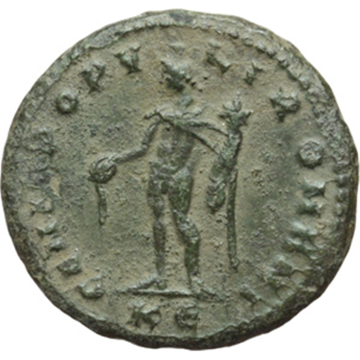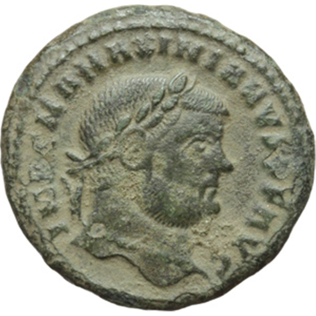 Impero Romano. Massimiano (286-310). Follis, Cyzico. D/ IMP CMA MAXIMIANVS PF AVG. Testa laureata a destra. R/ GENIO POPVLI ROMANI. Genio, stante a sinistra, tiene patera e cornucopia. In esergo: KE. RIC 10b. AE. g. 6.88 mm. 27.00 BB. Bella patina verde oliva, esaltata da delicata velatura calcarea.