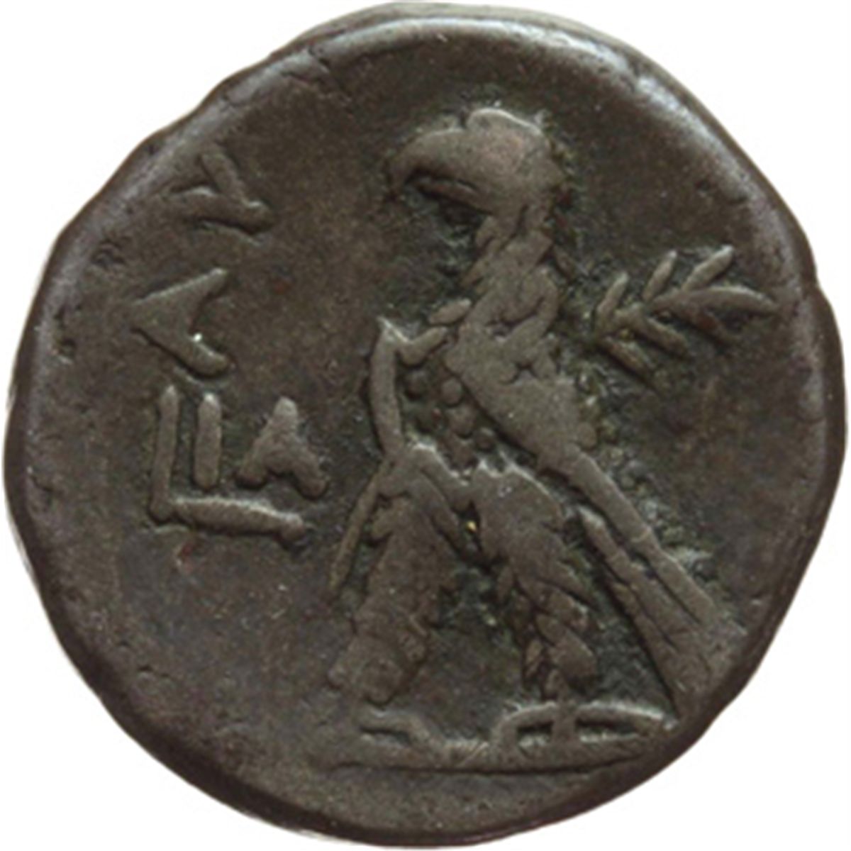 Impero Romano. Nerone (54-68). Billon-tetradracma, Alexandria, 64-65 d.C. D/ NEPΩ KΛAV KAIΣ ΣEB ΓEP. Busto radiato a destra. R/ AY[TOKPA]. Aquila stante a sinistra su fulmine. Davanti, LIA. A destra, ramo di palma. BMC 16.20,165. MI. g. 13.21 mm. 25.00 BB.
