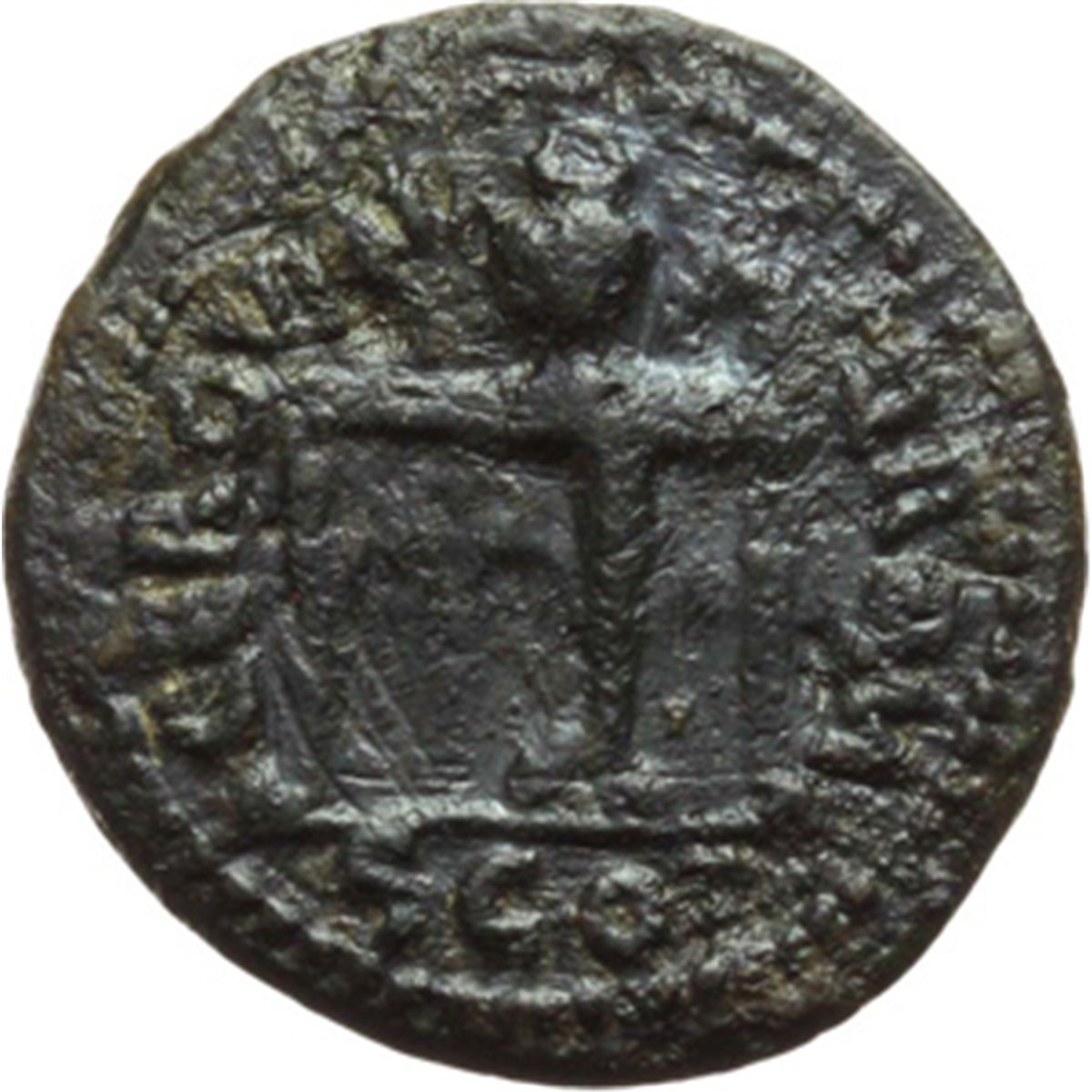 Impero Romano. Nerone (54 68). Semisse. D/ NERO CAESAR AVG IMP. Testa laureata a destra. R/ CER QVINQ ROM CO. Tavolo sormontato da vaso e corona. Nel campo a sinistra, S. In esergo: SC. RIC 234. AE. g. 4.38 mm. 18.50 qBB/BB.