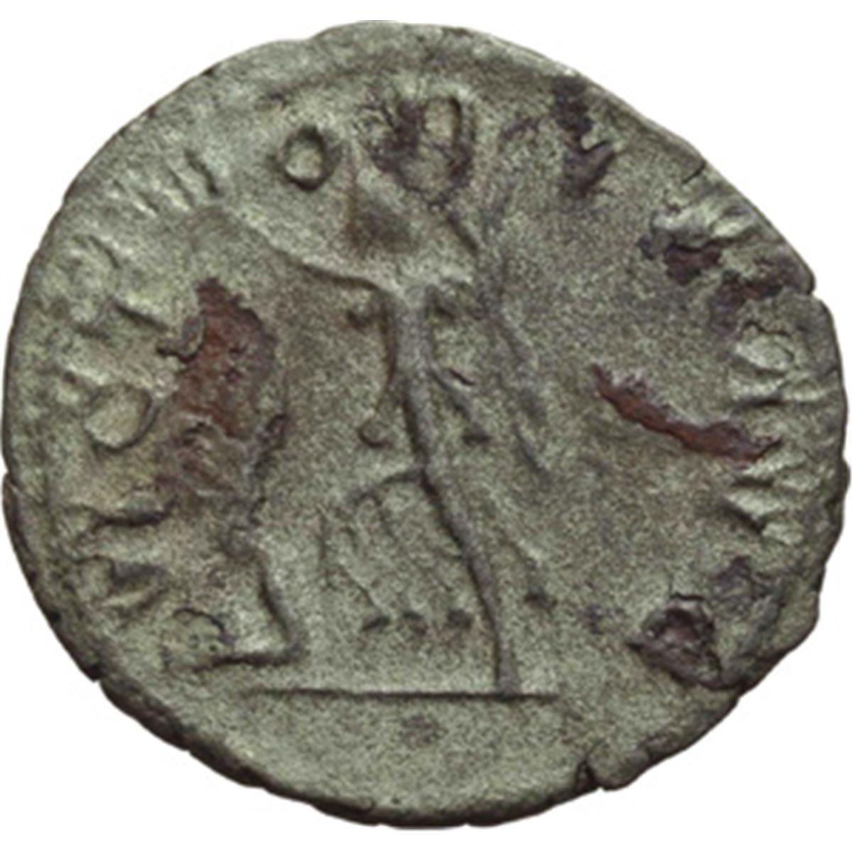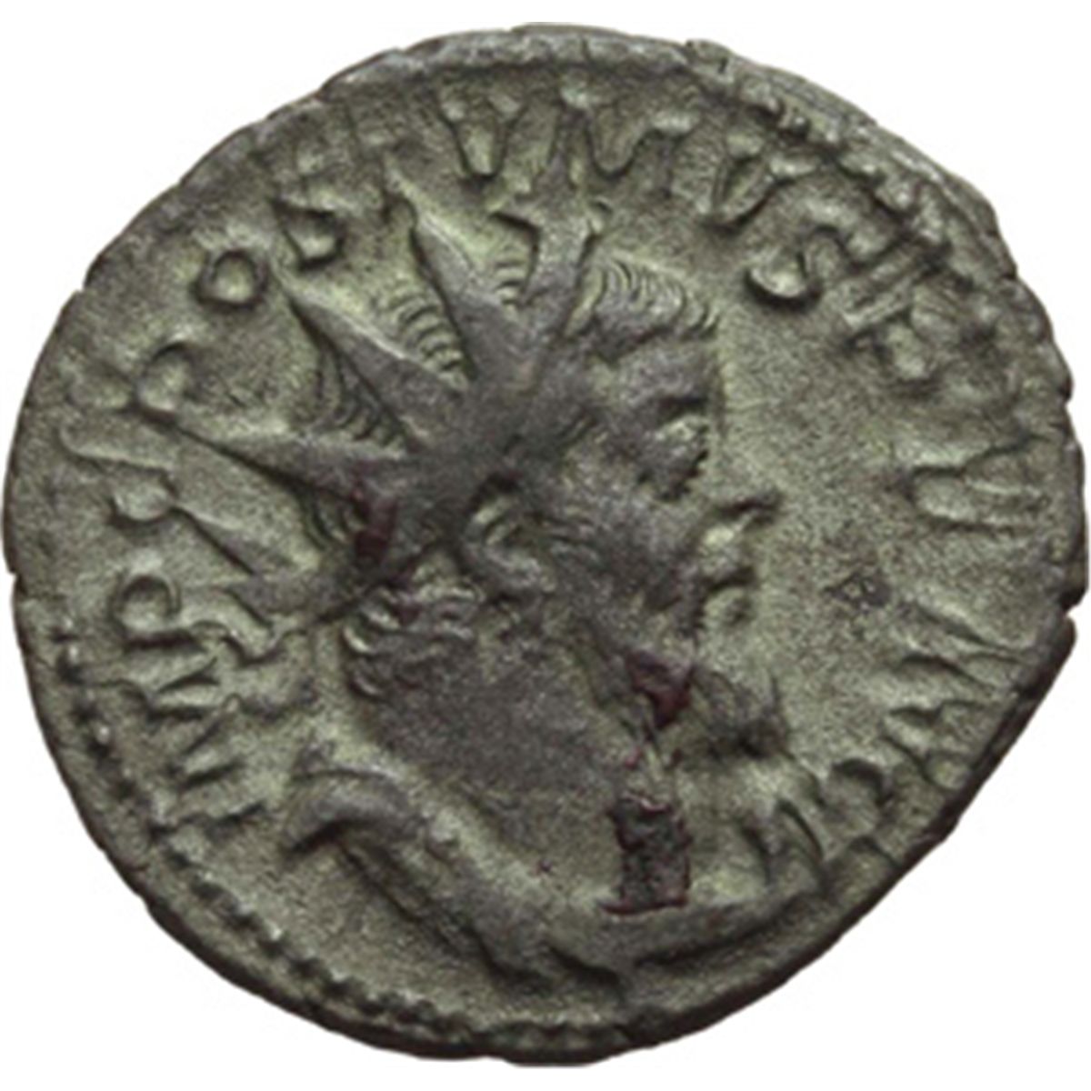 Impero Romano. Postumo (259-268). Antoniniano, Lugdunum. D/ IMP C POSTVMVS PF AVG. Busto radiato, drappeggiato e corazzato a destra. R/ VICTORIA AVG. Vittoria avanza a sinistra tenendo corona e ramo di palma. Ai suoi piedi, un prigioniero seduto a sinistra. RIC 89. AG. g. 3.39 mm. 22.50 BB.