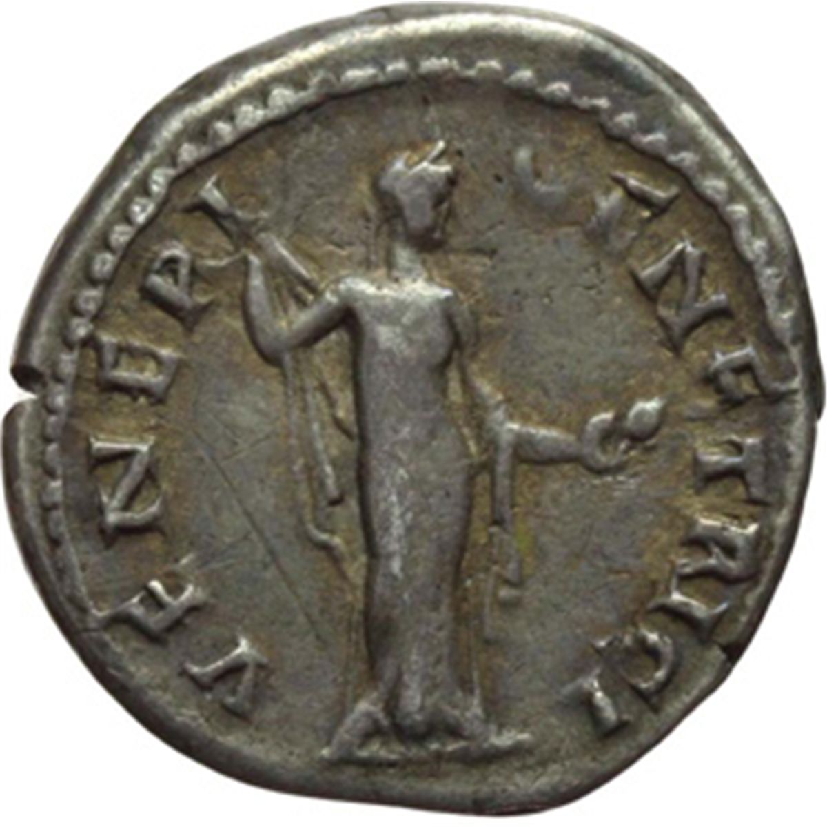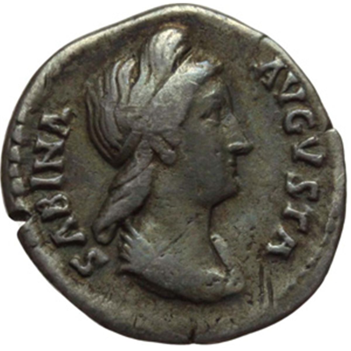 Impero Romano. Sabina, moglie di Adriano (deceduta nel 137 d.C). Denario. D/ SABINA AVGVSTA. Busto diademato e drappeggiato a destra. R/ VENERI GENETRICI. Venere stante a destra tiene un pomo. RIC 396. AG. g. 3.23 mm. 18.00 qBB.