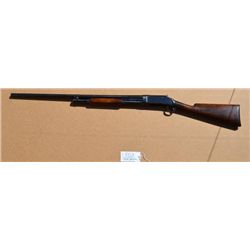 Ithaca Model 37 pump action shotgun, 16 gauge, 2-3/4” chamber, 26” ventilated rib barrel, blue finish, checkered wood stocks, #UTL-M37160035. This