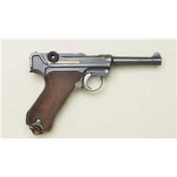 666 - German Luger by DWM semi-auto pistol, dated 1916, 9mm cal., 4” barrel, blue finish, checkered woodLittle John's Auction Service