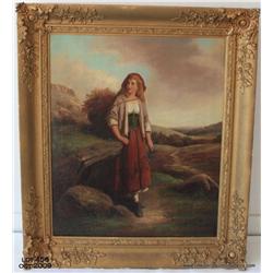 456 - Oil on canvas, "Girl in Field", 24x29.5, European 19th century, signed and dated lower right (undeLittle John's Auction Service