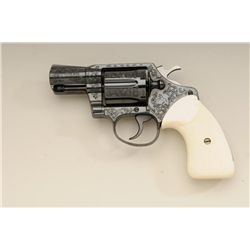 Colt Detective Special in .38 special caliber, double action revolver, factory engraved, blued finish, checkered ivory grips, serial number M32727