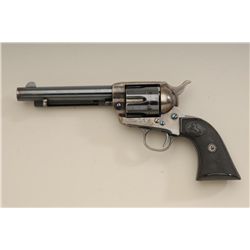 Colt SAA revolver, .44-40 cal., 5-1/2” barrel, blue and case hardened finish, checkered black hard rubber grips, #303564 with factory letter dated