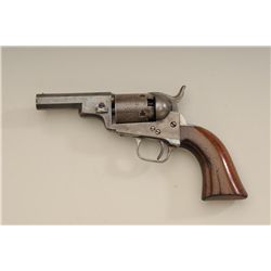 Colt Wells Fargo Model percussion revolver, 3” octagon barrel, blue and case hardened finish, wood grips, #57773. This gun is in overall fine condi