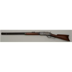 Winchester Model 1873 lever action rifle, .32 cal., 28” octagon barrel, blue and case hardened finish, wood stocks with checkered forend, button ma