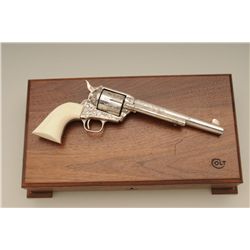 Colt SAA revolver, .44 Russian and S&W Special cal., 7-1/2” barrel, blue and case hardened finish, raised carved steerhead ivory grips, #3543...