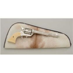 Colt SAA revolver, extensively cattle brand engraved by Weldon Bledsoe, .45 cal., 7-1/2” barrel, nickel finish, raised carved ivory grips, #81471 w