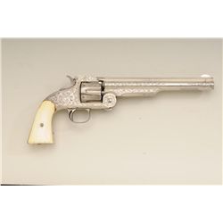 New York engraved Smith & Wesson Second Model Commercial Russian top break revolver, .44 cal., 8” barrel, nickel finish, period ivory grips, ...