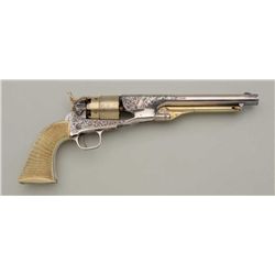 Engraved Colt Army Thuer Conversion revolver, .44 cal., 8” barrel, checkered ivory grips, #198635. This rare and desirable Colt is in overall very