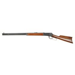 Winchester Model 1876 “Open Top” lever action rifle, .45-75 cal., 28” octagon barrel, British proofed, blue finish, wood stocks, left side of recei