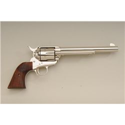 Colt SAA revolver, .45 cal., 7-1/2” barrel, nickel finish, smooth wood grips, #90499SA with factory wood grain cardboard box with end label numbere