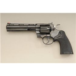Colt Python DA revolver, .357 Magnum cal., 6” ventilated rib barrel, blue finish, Pachmayr checkered combat hard rubber grips, #93954E, with wood g