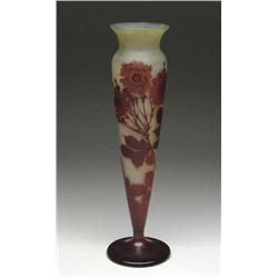 DAUM FRENCH CAMEO VASE. Excellent example of early acid-etched and enameled fall decoration. Signed on the base of the vase "Daum Nancy"...