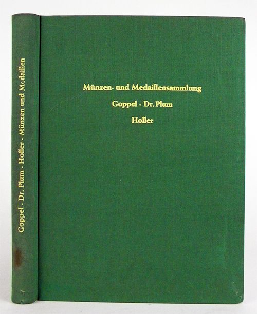 Kreß, Münchner Münzhandlung Karl. SAMMLUNG MARIE LUISE GOPPL - DR. PLUM - HOLLER. JOACHIMSTHALER MEDAILLEN, REFORMATION - LIEBE UND EHE - KRIEG UND FRIEDEN, MÜNZEN VON BADEN UND VIELEN LÄNDERN, LITERATUR. München, 3. Okt. 1960. 4to, original green cloth, gilt. viii, 198, (2) pages; 5922 lots; index of legends; 72 plates, virtually all depicting medals. Near fine. An important sale catalogue featuring Reformation and other medals. Clain-Stefanelli 14250.