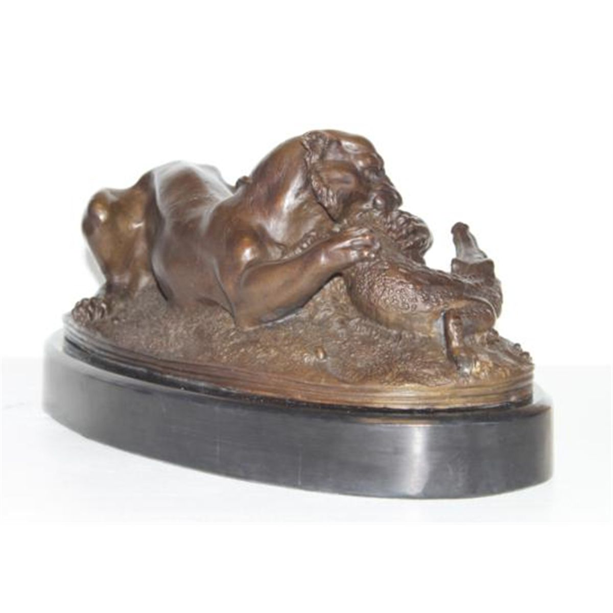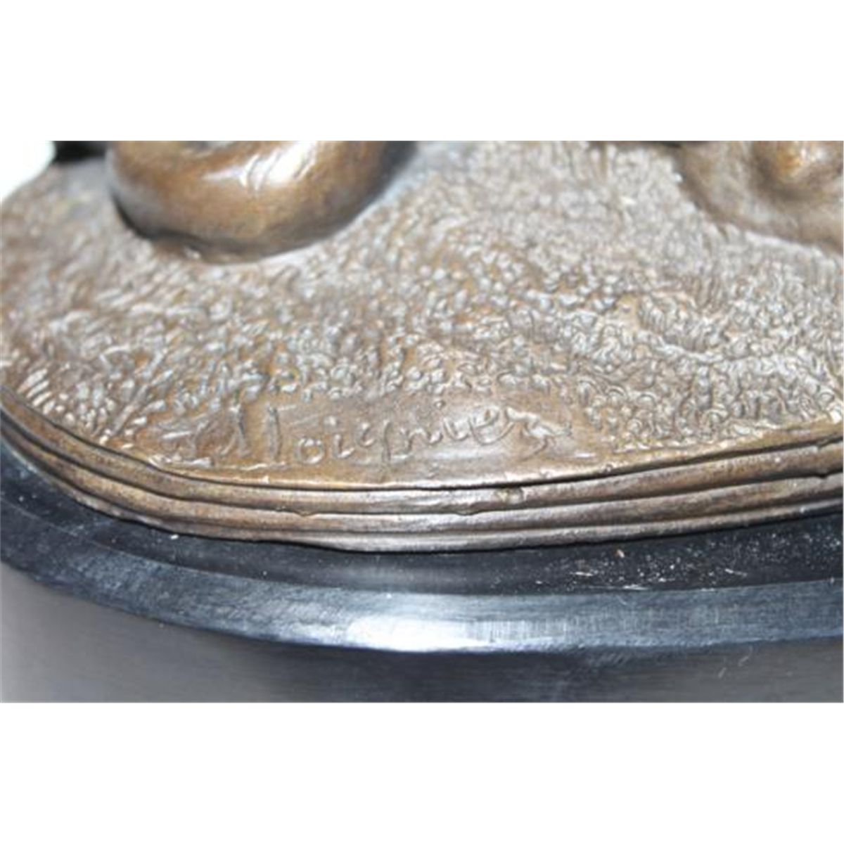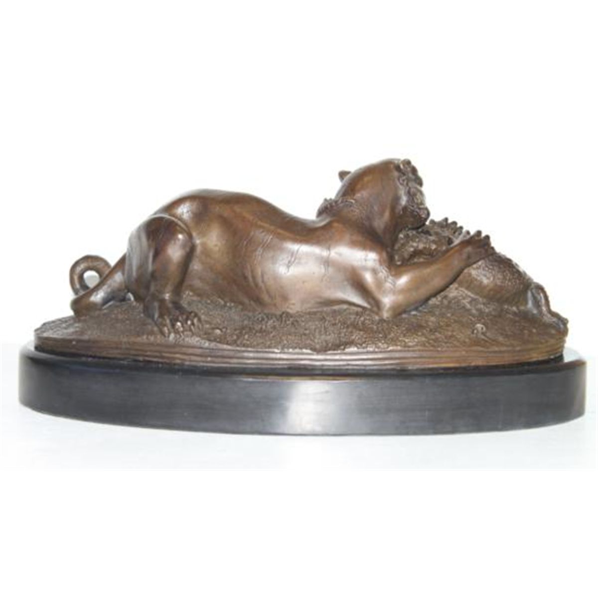 Fighting Panther and Alligator Bronze Sculpture, After Moiynuiz, 9"H x 12"W x 7"D24 lbs. This bronze sculpture was produced using the "Lost Wax" casting method. The"Lost Wax" Cast method is the most precise metal casting technique in existence, ensuring exquisite detail of the original host model which is usually sculpted in clay or wax. This "Lost Wax" casting method is an extremely labor intensive and expensive process, but the end results produce a Heirloom Quality Masterpiece!