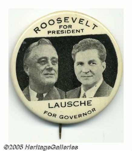 <B>Imposing Large 2 1/8" FDR "Coat-tail" Button from Ohio</B></I> Rare and long-considered one of the better Franklin Delano Roosevelt button varieties. It is in beautiful condition. Lot:263