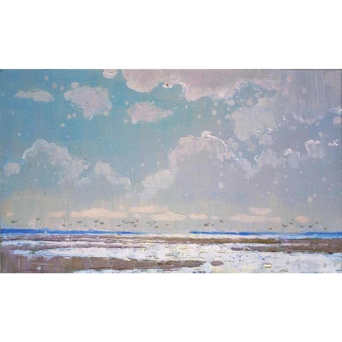 Impressionism Oil Painting Clouds Plein Air Summer Small Sunny Landscape – Ukrainian artist Anna Gusarova, “Clouds†- 30 x 50 cm \ 11.8 x 19.6†- high quality original oil on canvas signed and dated 2017 by artist – guarantee of authenticity