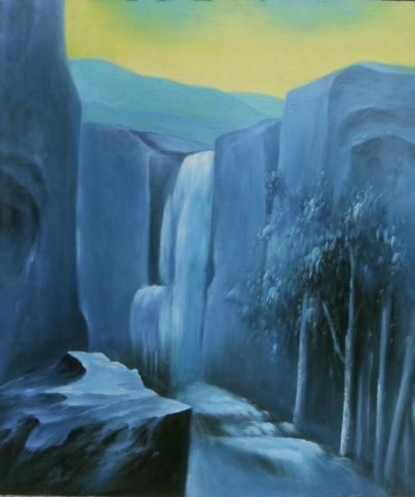 This ~flash~ painting in oil was accomplished with minimum brushstrokes while using an impressionist landscape as its theme. Measures 20 x 24. Comparables found on ArtFact. $500 to $750.00 MWF 1984