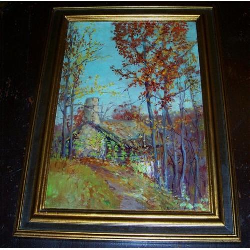 </font></strong>Offered here is a very fine oil painting by 20th century artist, Grace M. Haskins, Chicago. The painting depicts an autumn mountain landscape with a cabin. The colors are superb and the artist is very skilled. It is framed in a gilt wood frame with a black interior border. The painting measures 16" by 22" as framed. The painting is 12" by 18". (Approximate measurements.) The artist is listed in Who's Who2, Davenports. This is truly a most attractive painting. </font>