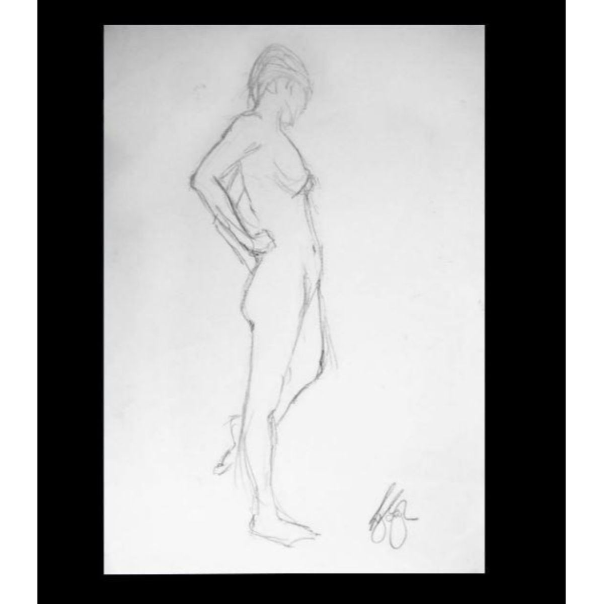Impressionist Standing Nude signed pencil drawing on paper. 16 1/2" x 11".