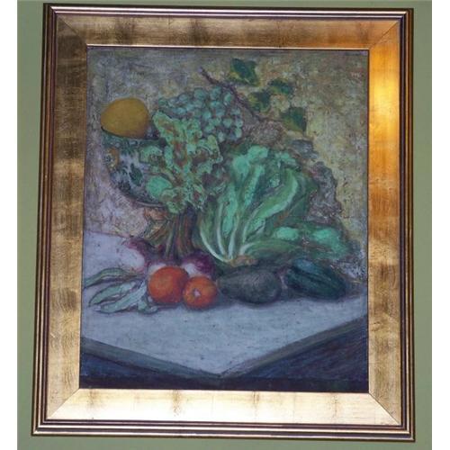 This is an unframed oil on canvas attributed to Everett Lloyd Bryant. From Edan Hughes, "Artists in California, 1786-1940", Bryant was a painter and muralist known for his flora still lifes and landscapes in watercolor and oil. He studied in London with M. Blanc and Thomas Couture. Later he attended the Pennsylvania Academy of Fine Arts under Thomas Anshutz, William Merritt Chase, and Cecelia Beaux. He died in Los Angeles in 1945. The painting is quite wonderful, with bold impressionistic style and colors. It is unframed and has had a small hole repaired in the canvas. As to the attribution: I bought it as painted by Bryant, from a reputable gallery in the NE. I have not found a signature however, so the best that I can say is that it is after or attributed to the artist Everett Lloyd Bryant. It is a thoroughly delightful painting and as such, is well worth the price whoever painted it. The size is 18" by 22".