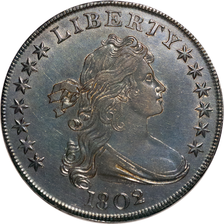 1802 Draped Bust Silver Dollar. Heraldic Eagle Reverse. Bolen-6. BB-241. About Uncirculated.
