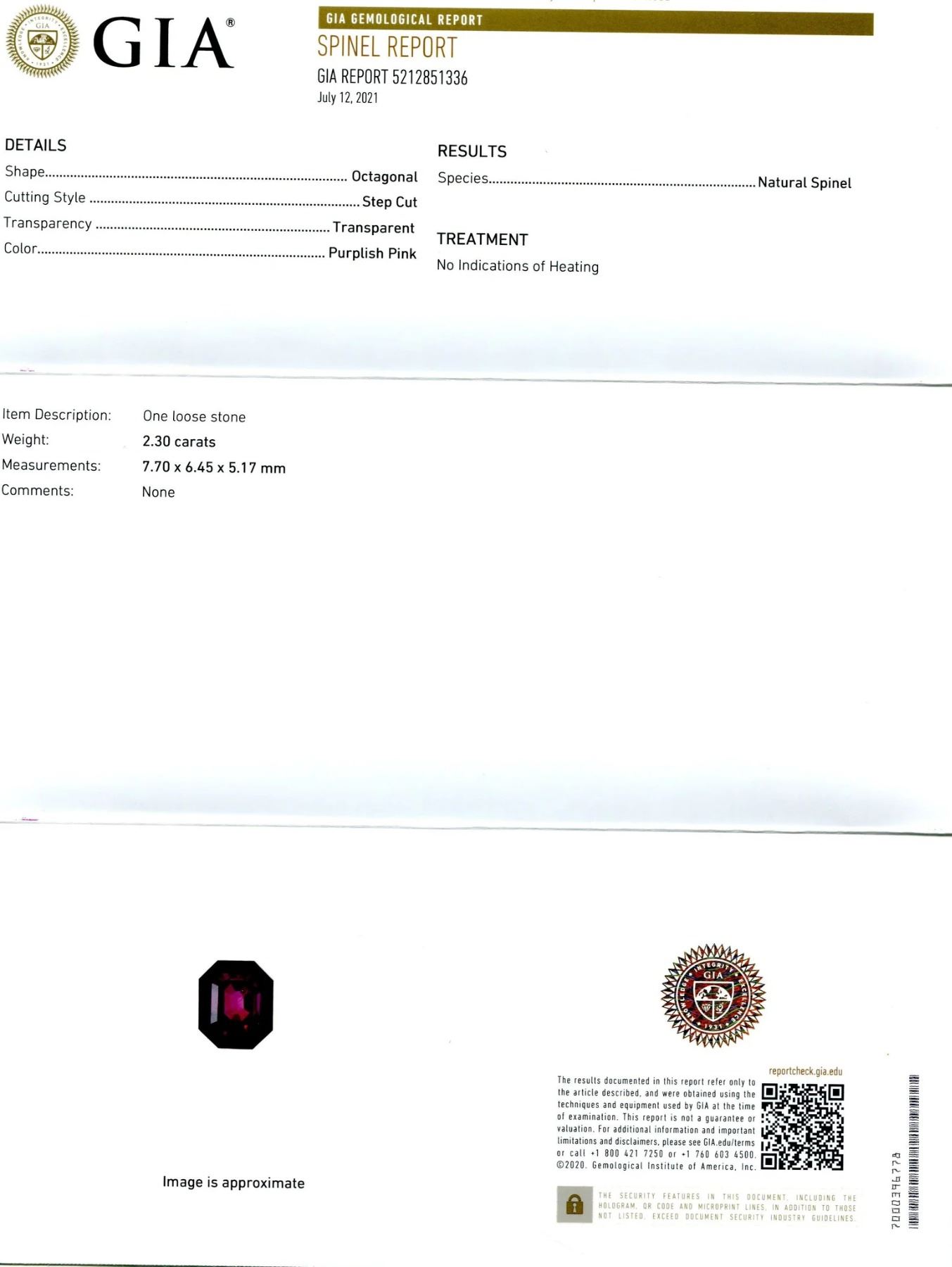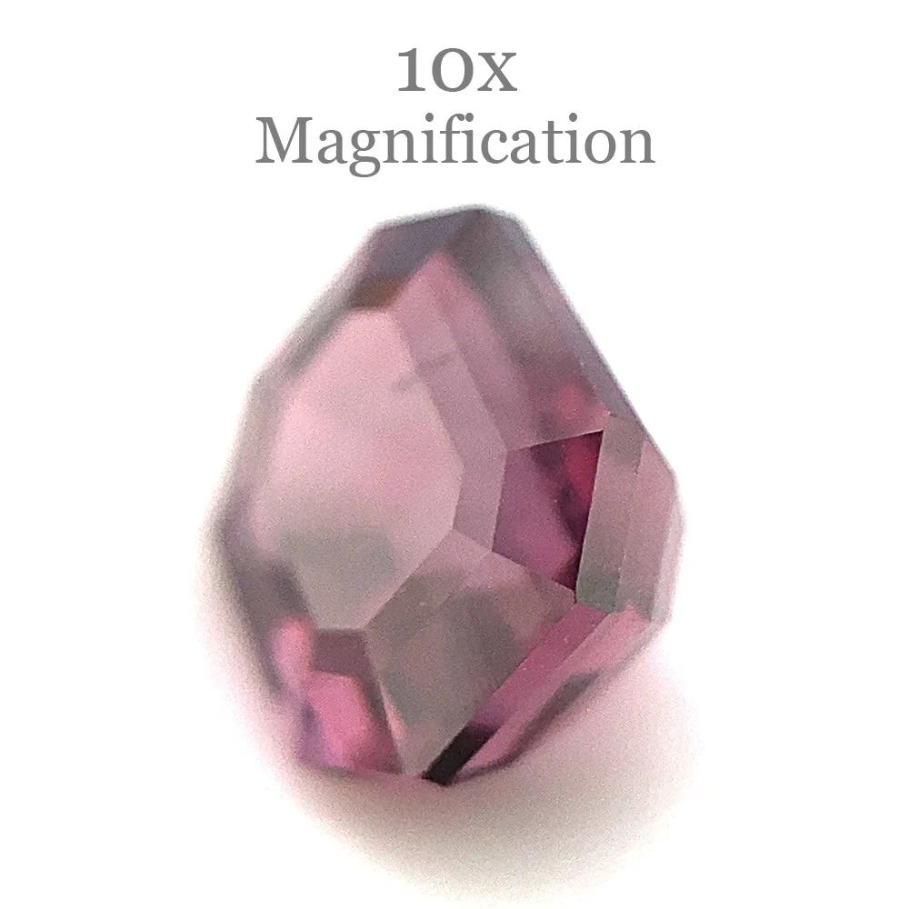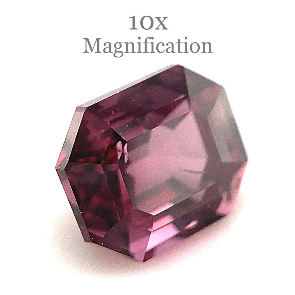 Lovely Unheated 2.3 Ct Purplish Pink Spinel measuring 7.70 x 6.45 x 5.17 mm with an emerald cut. This gem displays strong saturation and would make a stunning centerpiece. Get ready for the compliments on this one! Treatment: None. Please see the certification for additional information.