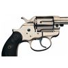 Excellent. The revolver retains 99% of the original factory nickel plated finish with some flaking on the forward portion of the cylinder, the inside edges on the frame adjacent to the cylinder and the edge of the barrel at the muzzle. At least 95% of the fiery niter blue finish is present on the trigger and hammer. The cylinder latch pin appears to be a contemporary replacement. The grips are excellent with minimal fading, light handling wear and crisp checkering. All of the markings are sharp and the engraved inscription is crisp. The action is excellent. The case is excellent. The top and sides have most of the original finish and show only light storage marks. The red baize lining is excellent and shows minimal contact wear and some oil stains. This is an impressive example of a rare inscribed Colt Model 1878 Frontier Six Shooter Revolver.