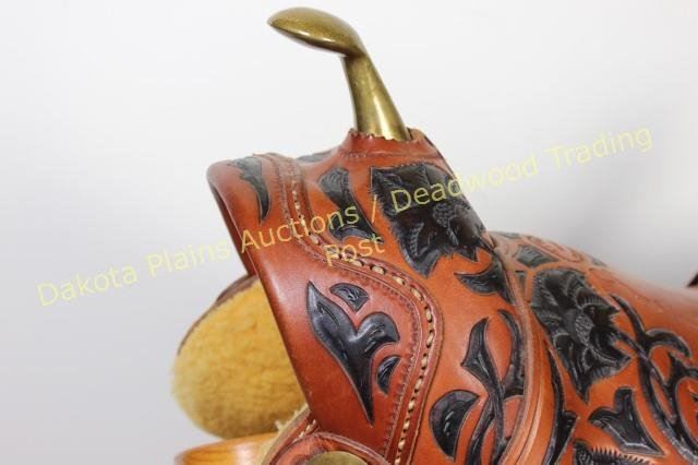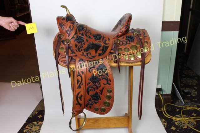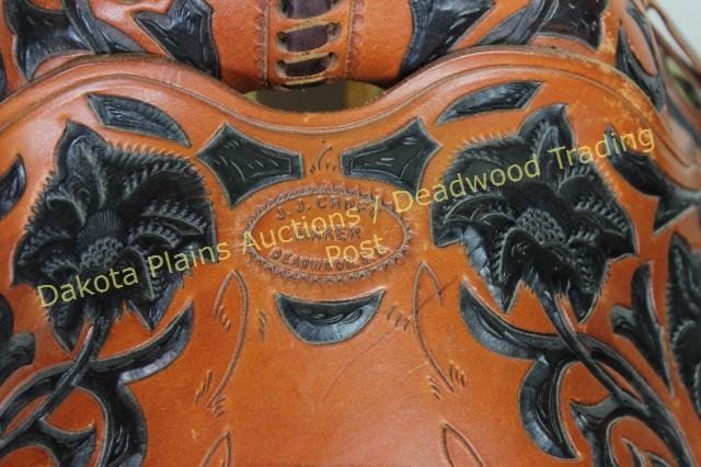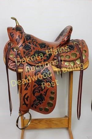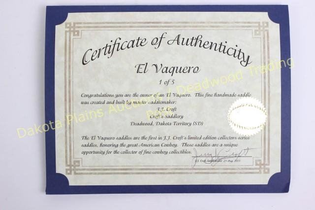 deceased Deadwood maker 1942-2013, #1 of what was to be the first of 5, however Jerry never finished 2-5 of the El Vaquero editions. The saddle features a 16" seat, brass horn and conchos, iron stirrups,