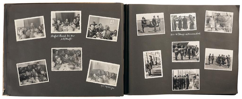 Impressive Luftwaffe Night Reconnaissance Officer's Grouping Including a Gold Etched Presentation Dagger a Fine Grouping of Badges and Medals Two Flight Logs and Four Photo Albums from Leutnant Fritz Edelhoff, Artillerist Turned Recon Pilot