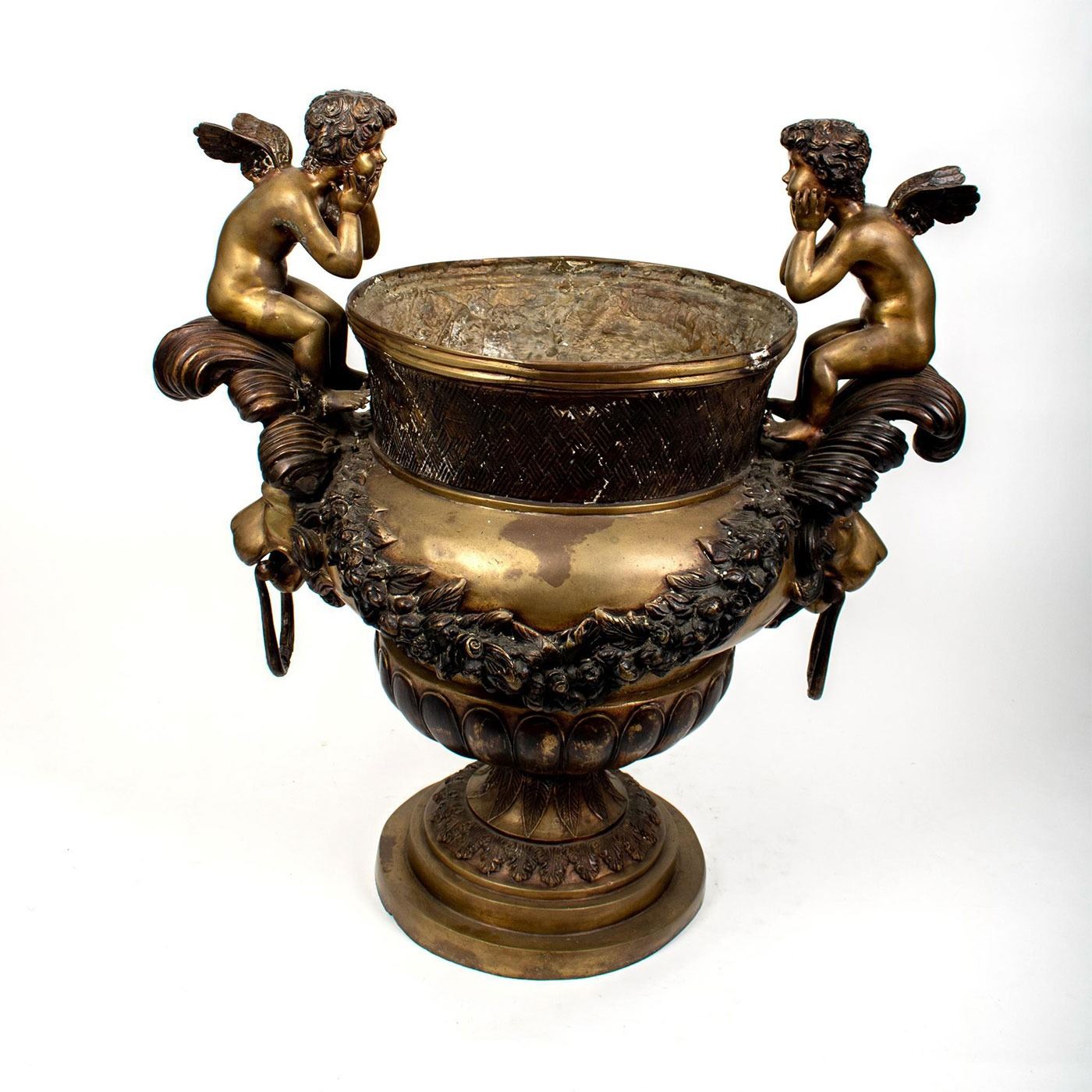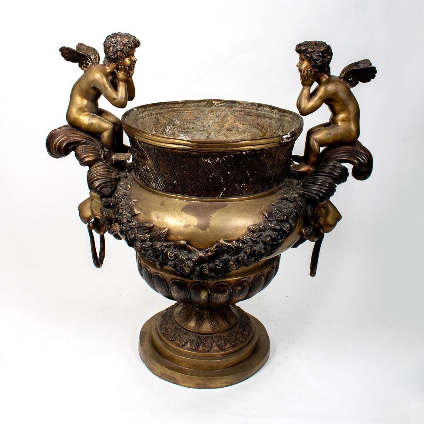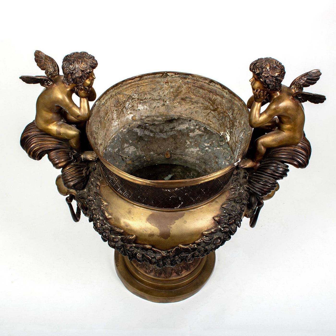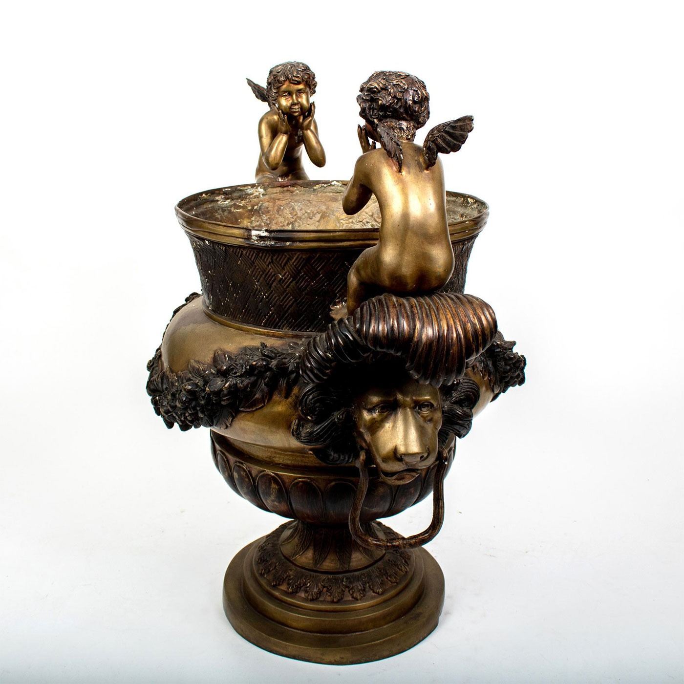 Impressive Palatial Mid-Century Bronze Urn, Cherubs and Lions