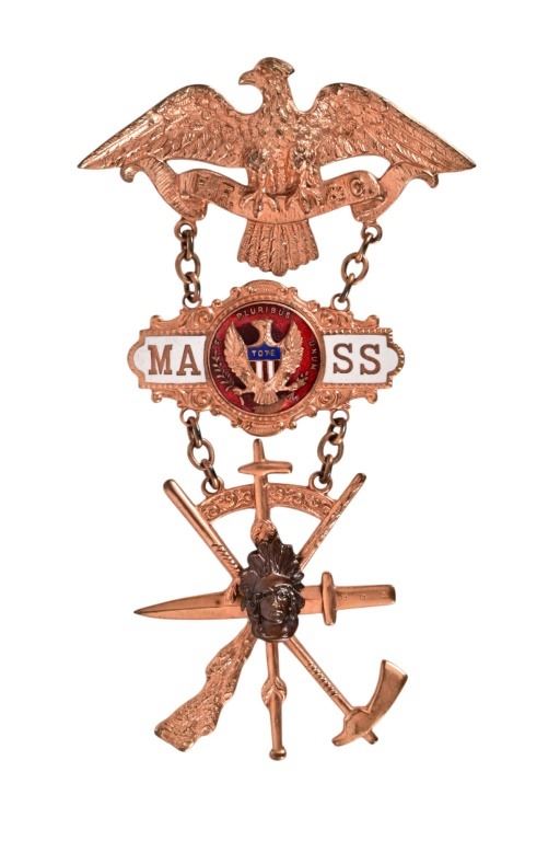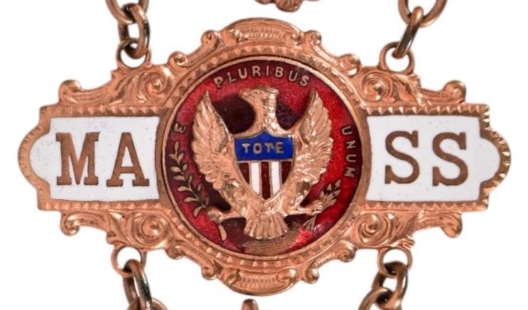 With case marked F.J. Gorton Co. Jewelers, Attelboro, Mass. Pin measures 4 1/4" long. Case shows some wear. Pin is excellent condition.