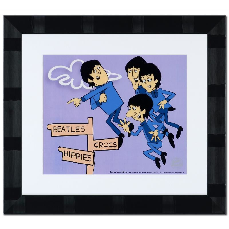 This must-have sericel re-creates a wacky scene from "The Beatles" Saturday morning cartoon series! "The Beatles: In Air" is a limited edition sericel and bears the official DenniLu Company stamp! This piece has been framed and is ready to hang. Includes Certificate of Authenticity! Measures approx. 18.5" x 16.5" (framed); 12" x 10" (cel and background).
