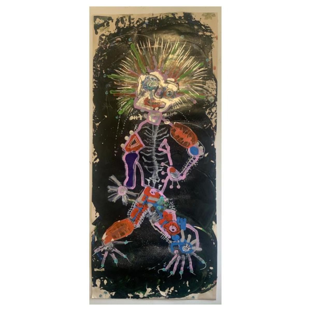 In Cahoots by Kostabi Original. "In Cahoots" is a mixed media original painting on paper by Paul Kostabi. Hand signed, this piece comes with a letter of authenticity. Measures approximately 47.5" x 20.5".