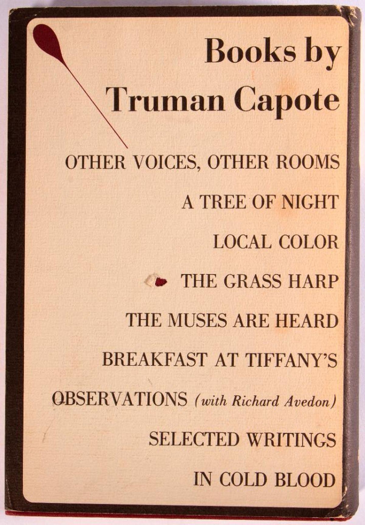 Title: In Cold Blood Author: Truman Capote Published: Random House, New York, 1965 Description: Hardcover. Dust jacket. Book club edition. Condition: Good condition. Light rubbing and bumping to edges.