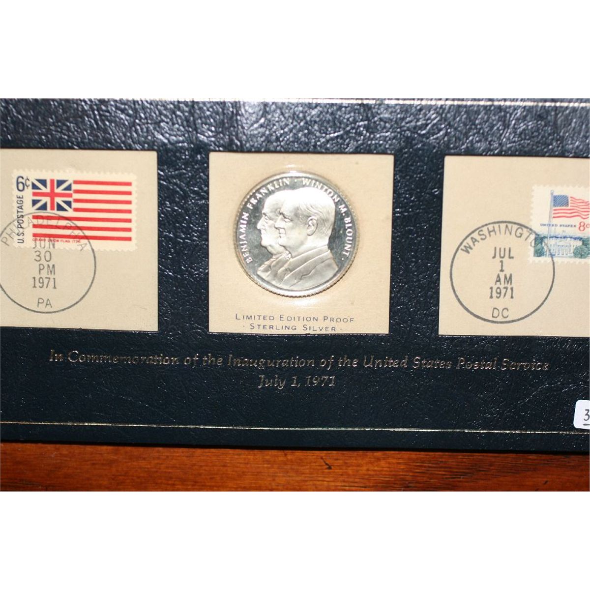 "In Commemoration of the Inauguration of the USPS July 1,1971" Sterling Silver Franklin-Blount Coin and Stamp Set