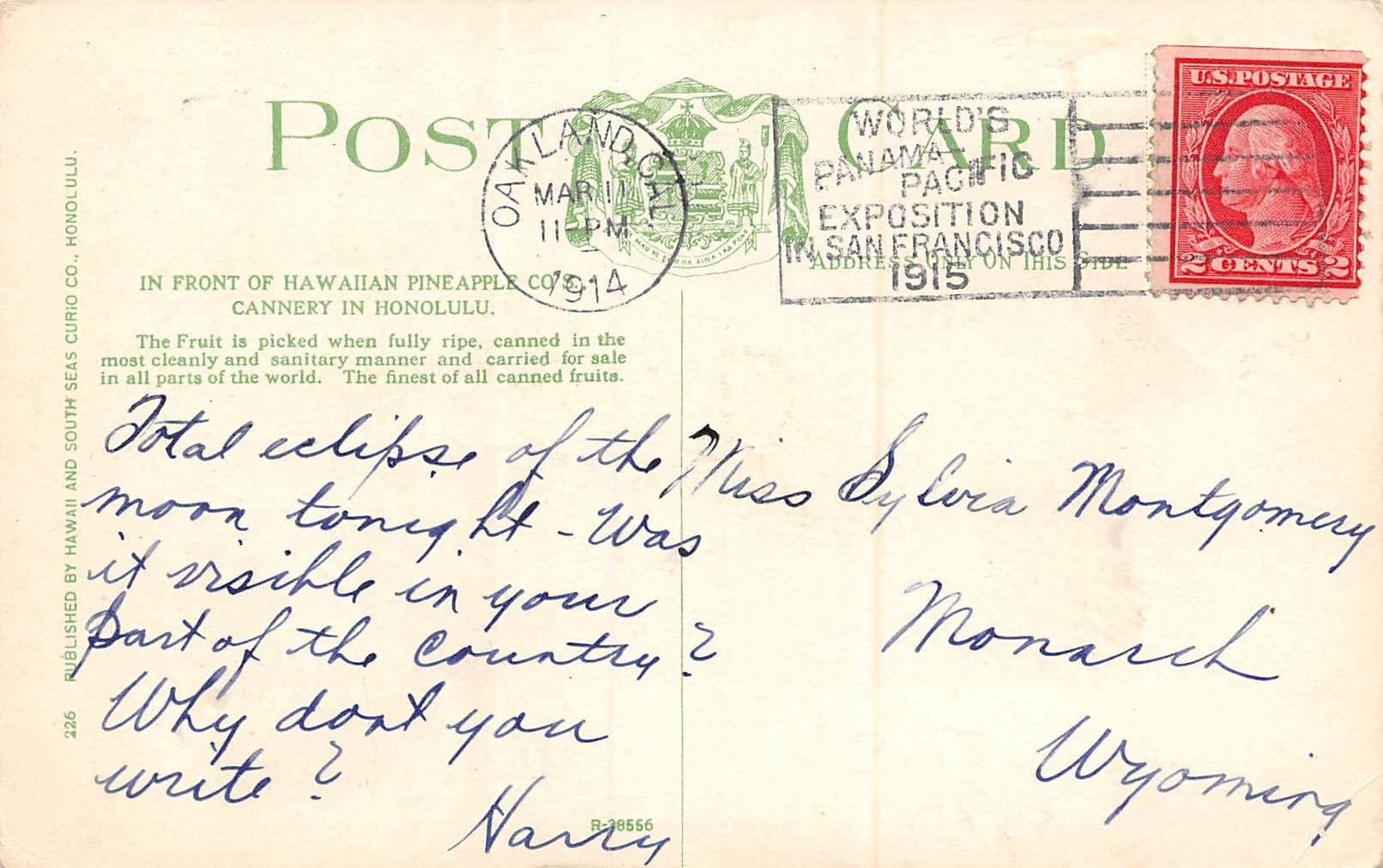 In Front of Hawaiian Pineapple Co. Cannery In Honolulu Postcard