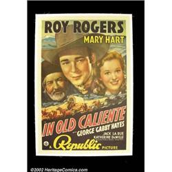 In Old Caliente (Republic 1939) One Sheet (27"X41"). Often considered Roy Rogers' "other" best one sheet, this title rarely becomes available. Fine+ on Linen. Important notice: We expect to be auctioning lots at the rate of 200-250 per hour. Sometimes eBay Premier live bid software cannot keep up with that pace, so we strongly recommend that you place a realistic proxy bid now as insurance to avoid disappointment. Also please note that all Heritage/CAA lots purchased through eBay Premier carry a 20% Buyer's Premium.