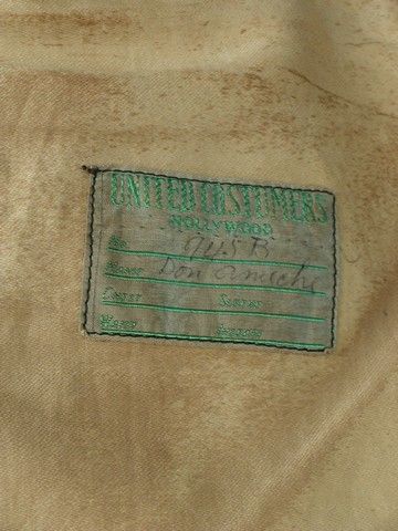 From one of the first and greatest big-epic disaster films, "In Old Chicago" (1937), the classic blockbuster about the Great Fire of 1871 that virtually leveled the great city. This is star Don Ameche's hero screen worn vest in his portrayal of Jack O'Leary one of the brothers of the "celebrated" family held responsible for starting this inferno. The vest includes the original "Union Costume" label with Don Ameche's name. There are some tears to the lining due to both production use and age.