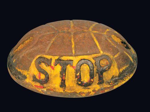 In-Road Cast Iron Traffic STOP Turtle. Very rare. Good condition. 13 x 9 x 5 inches.