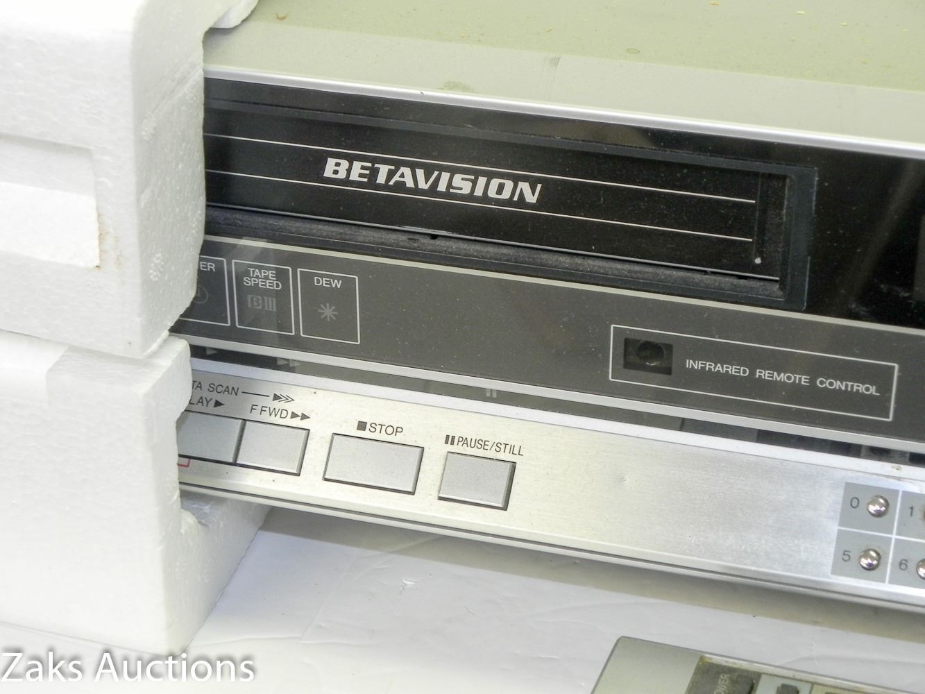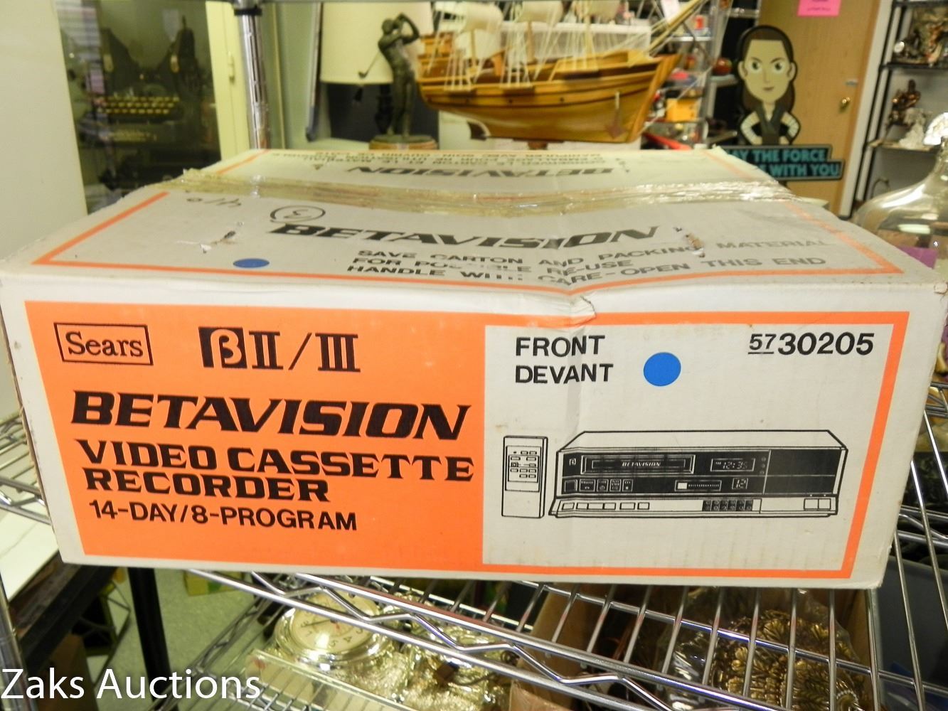 In box Sears Betavision Video Cassette Recorder 14 Day/8 Program with Remote. Model 30205. Turns on, untested