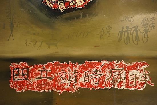 (one side is an Oracle style wood caring, another side is oracle bone rubbings style), Unknown. Condition as is, shown in photos. Painting:80cm*59.5cm