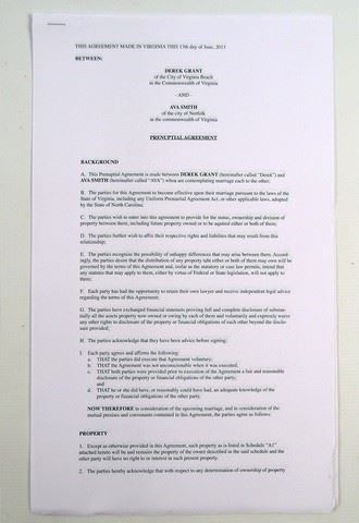 Ava (Gina Carano) and Derek (Cam Gigandet) screen used, Prenuptial agreement. (approx. 13 1/2" x 10) Condition may vary.