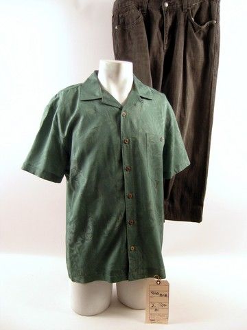 Big Biz (Danny Trejo) screen worn, hero, green with floral print short sleeve button front 'Island Shores' shirt, (size L) and black denim 'Claiborne' jeans. (size 36) Includes wardrobe tag!