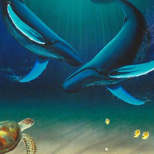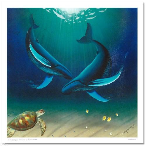 Wyland's true love for nature is so clearly conveyed in each of his brilliantly detailed works. "In the Company of Whales" is a limited edition giclee on canvas, numbered and hand signed by Wyland! Includes Certificate of Authenticity! Measures approx. 30" x 30" (image).