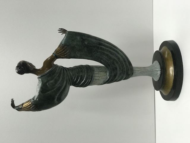 "In The Evening" by Erte Bronze. Limited Edition #1 of 300 - 19" x 8" x 6" - Erte designed "In The Evening" in February 1922. In Erte's words "I designed an elegant evening gown for Parisian nightlife. This design was since presented in Harpers Bazaar in